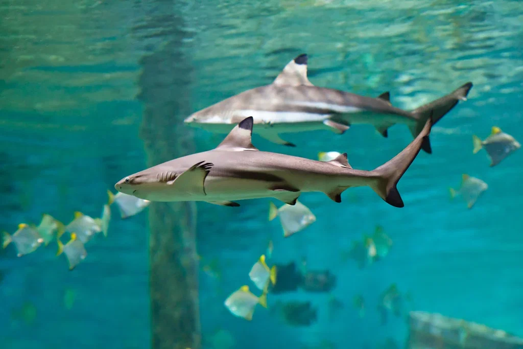 Маршрут осмотра экспозиции океанариума, включает четыре тематические зоны: «Леса и степи», «Полярные воды», «Джунгли» и «Моря и океаны».
