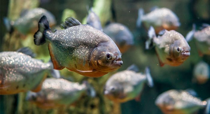 В экспозиционной зоне «Джунгли» представлены такие удивительные тропические животные как грифовая черепаха и черепахи мата-мата – гордость коллекции Воронежского океанариума, 3-х метровая парагвайская анаконда, пираньи, амазонские скаты, крокодиловый кайман, лемуры и другие.